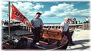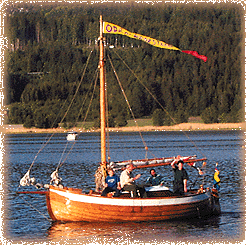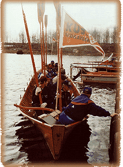 ![]() Första deltagande båt: Lapinkulta; norra budkavlen. (foto: Leif Svanberg, Haparandabladet) | ![]() Första deltagande båt: en "pärejakt"; södra budkavlen. |