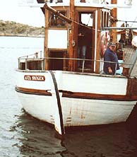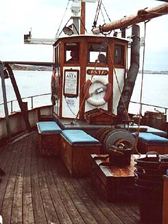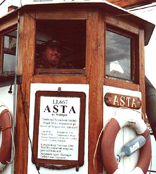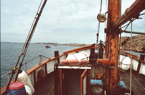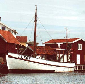 FÖRFÖRD AV ASTA...Lika bra att erkänna på en gång. Redan när vi närmade oss, från sjösidan, där hon låg,för vissa säger det visst "klick", men vad säger man till sjöss? Plask!Väl på kaj så kände jag den där pirrande känslan, du vet. Minnesfilmen backade snabbt,där stod jag en lång stund och bara drömde mig tillbaka. Visserligen var det trålare på ostkusten som "dunkade" fram i min film. Torskreven bärgades, likt en fotoblixt, blänkte det till när torsken kom ombord. Varsamt tillbaka i verkligheten, hälsades jag välkommen av skeppare Per Karlsson. Han hade redan öppnat "Sippan Bu", föreningens fasta boning vid kajen i Fisketången. Efter en kort visning på kajnivå, där fanns ett komplett pentry, kom vi upp på ett högre plan. Ur föreningens rikhaltiga bibliotek plockades ett digert fotoalbum fram. I livfulla ordalag beskrevs bilderna från deras arbete med att bygga upp "bua" från grunden. Urban Stranne, kassör, som bjudit på båttur från den inre hamnen vid "Smyghålet", Smögen, berättade om deras fina möteslokal och om den nedre delen som ofta hyrdes ut för olika festarrangemang. Idéer är det visst inte brist på i föreningen, plötsligt utbrast Urban: "Borde vi inte ha ett större fönster utåt hamnen". Per kontrade med att öppna en stor lucka i gaveln mot hamnen. Utsikt, ljus och frisk luft i en handvändning. Hur det blir med fönstret, får framtiden utvisa. En intresserad man steg fram och undrade över medlemskap i föreningen. Det visade sig att han hade skepparkompetens och stor yrkesvana. Sånt händer på en lördag i början av september i Kungshamn!