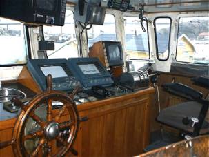 ”Kommandobryggan” visar upp en imponerade instrumentering! Allt intakt, så med guidens hjälp får du veta hur det egentligen fungerar, plus saltstänkta skrönor om fiskarens arbetsliv ute till havs. |