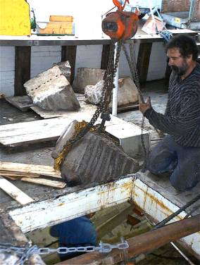 Ett omfattande restaureringsarbete har startats ombord. Flera ton av ballasten (gjuten betong ) skall mejslas loss till hanterbara stycken, för att kunna transporteras ur fartyget. Arbetet utförs av frivilliga från föreningen. Anledningen till att man plockar bort ballasten är att man vill komma åt att kontrollera tankar och skrovet. Därefter börjar ett intressant arbetet med inredning av f.d. lastrummet. Gör ett besök redan nu på en guidad tur ombord på ett välbevarat maritimt kulturarv och stöd föreningen genom ett medlemskap! Hälsningar/ red. Kustguide. |