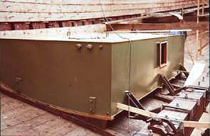 | Med ett tillfälligt tak över sig gungar hon lite vällustig vid kajen. Denljusa täckningsplasten ger ett behagligt dagsljus för arbetslaget. Tumstockoch penna, på timmermansmaner, skisser och funderingar. Smygvinkel ochvanlig, vinklar resonemangen. Tänk efter före, är en god tanke. Föröver och längs babordssidan pågår arbeten med garneringen ochklinkbultning.Grabbarna på flotten får säkert "sjöben" innan kvällen. Borrningarna förbultarna flyter på bra. Inombords och för om bränsletankarna har arbetet medett av de två vattentäta skotten påbörjats. Allt efter hand så börjar manatt bygga in sig, nu gäller det, att det som skall in först inte blir sist.Goda tankar, tänkta före är något att tänka på. Tankar som rinner för en, så här midskepps, det ryms säkert många liter bara ien av dem. 9.000! Lika mycket i den andra. 18.000 blir det tillsammans.Utan att avslöja allt för mycket om gångdistanser, - en överslagsberäkningger så där en 400 gångtimmar, alltså c:a. 3.600 distans-minuter (600landmil). Det förutsätter förstås att motorn är igång, det sker baraundantagsvis, - här ska seglas! En del av vad som finns i tankarna har du väl också tänkt på. Det behövsbl.a. elektricitet ombord. En hjälpmotor om 50 kWh vill ha lite fråntankarna också.Även om varken Vår Herre eller Kajsa Blås orkar med att ordnavind, så kan nog skepparen känna sig trygg. Drygt tretusen distans, då skaman vara långt bort för att råka ut för "soppatorsk". Lasse, han som har så god hand med Gerda Gefle:s samarbetspartners, gledförbi. Telefon igång, i ena handen, ett notisblock i den andra, berättandeatt hyvlingen av däcksplanken snart är klart. Kunde inte missförstås, det ärbra att ha däcksbalkar och knän på plats, innan... Kul stämning och trivsel möter en på Gerda Varvet. Pröva på med ett besöknågon gång! Lasse var egentligen i full fart med arrangemangen för den mycket populäraträffen för sponsorerna, förlåt, samarbetspartners, ska det heta sa' Lasse.Fast det visste du väl förut, eller... jo, slå du en signal till Lasse såordnar han till det där med samarbetspartners. För han tänker också på detdär med inombords, fast kanske i ett annat skrov. Alltså, festligheterna ochdess påtagliga påverkningar i positiv form. Trivsel (vikt). Hälsningar från Hamnkontorets personal, som var på lunch vid Gerda Varvet! PS. Kolla vårt Annonstorg så får du veta lite om de utbildningar som kommeroch som pågår på Gerda Varvet. DS. |