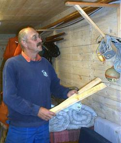 Det nedre planet, jo, det har s.a.s. insteg direkt från bryggan. Det är här det händer och är händigt. Just vid besöket var Cåre igång med inredningssnickeriarbete. Det blir visst lite uppåt väggarna. En mängd material, ex. master o bommar till jollarna måste vinterförvaras. Segel, trossar, bojar, flytvästar osv., Du anar inte va´ med prylar det finns som ska vara någonstans.